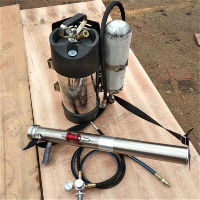 本装置是将空气呼吸器和细水雾灭火装置进行有机组合,既能满足灭火操作人员方便携带进入火灾现场进行灭火,又能满足呼吸需要,且重量配置合理具有背负舒适,操作简单,维护方便等特点。